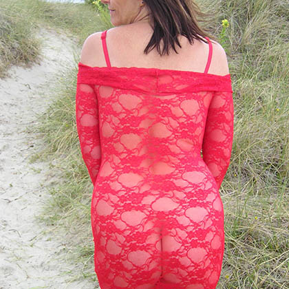 Äldre milf i genomskinlig...